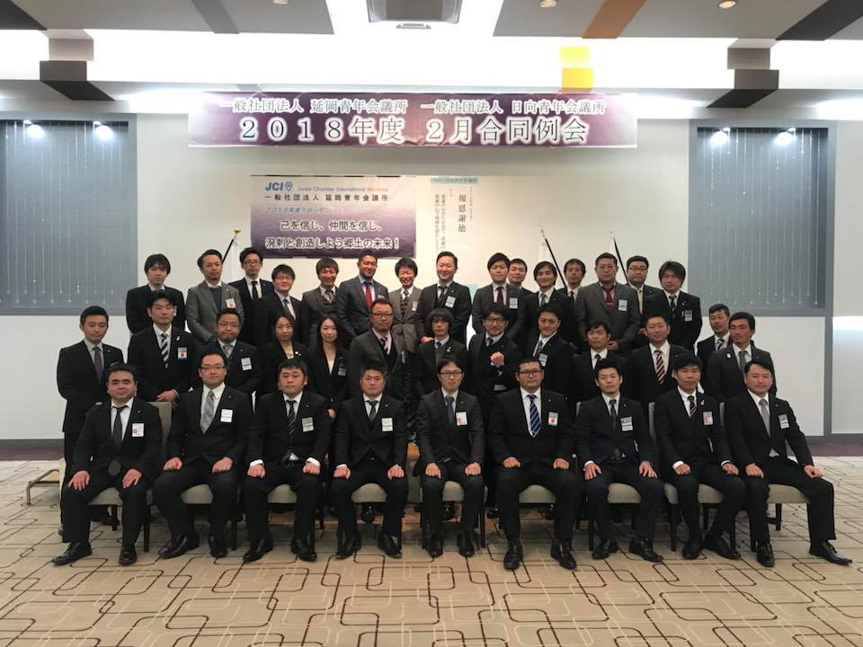 2月8日に延岡市のマリエールオークパインにて歴史のある一般社団法人延岡青年会議所と一般社団法人日向青年会議所との2月合同例会が開催されました。後座の懇親会の時間…