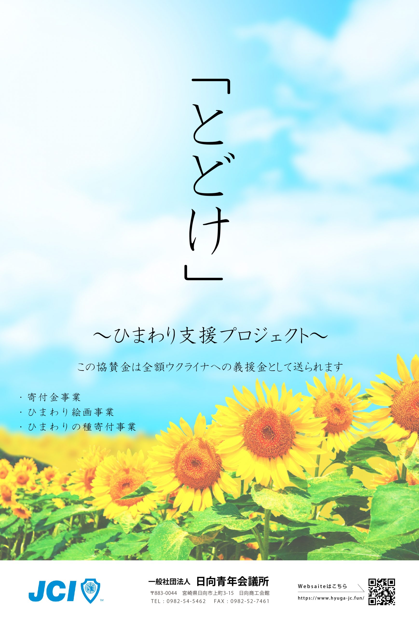 この度日向青年会議所では、「とどけ」~ひまわり支援プロジェクト~として、ウクライナの国花であり日向市の市花である「ひまわり」をテーマに様々な形で市民参画型のウクライナ復興支援事業を行ってまいります。